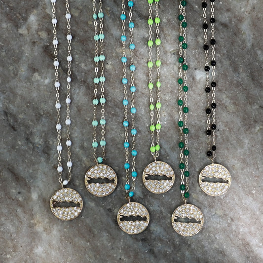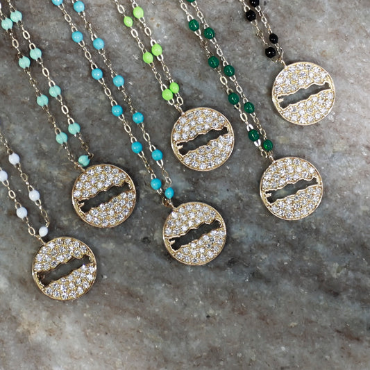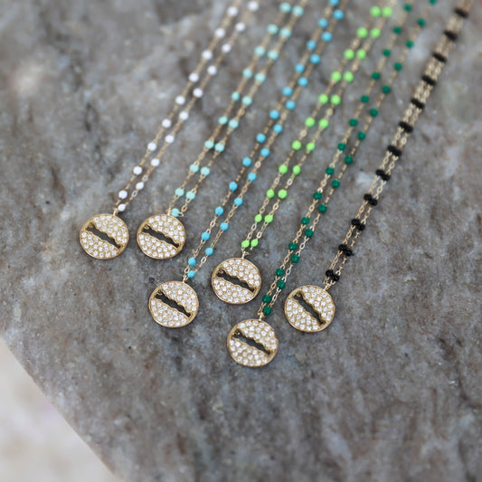 Le Rive 30A Pave Diamond Large Coin Necklace in Turquoise