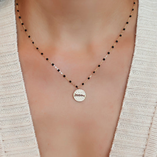 Le Rive 30A Single Diamond Petite Coin Necklace in Black