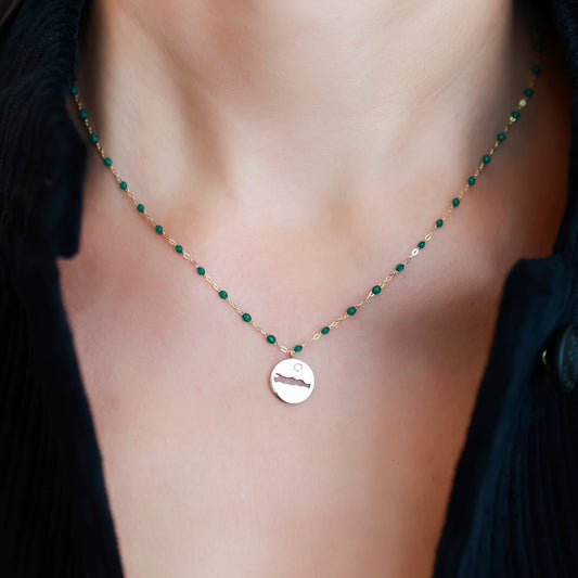 Le Rive 30A Single Diamond Petite Coin Necklace in Emerald