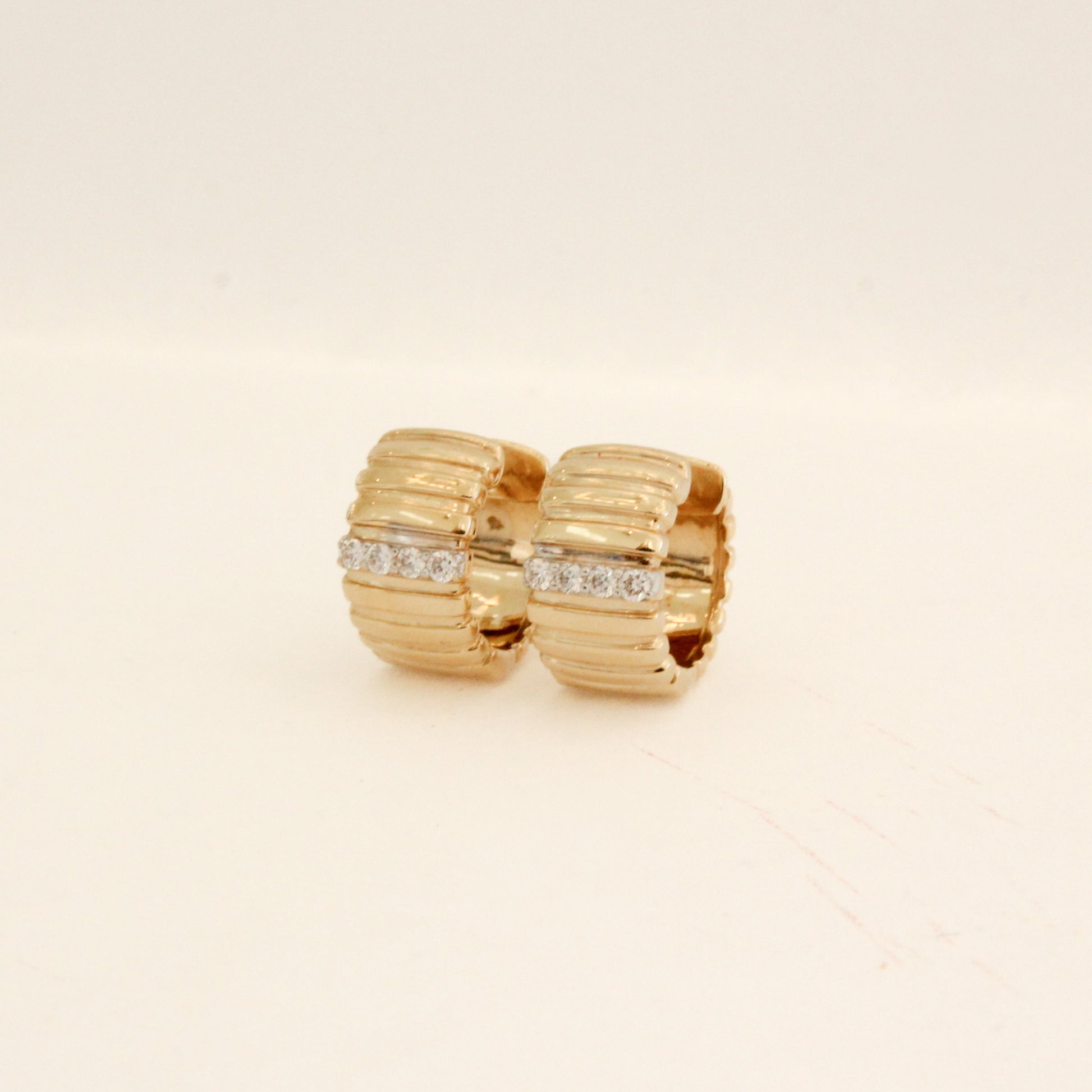 Elevate your everyday elegance with the Carlos Chunky Huggies—bold, statement-making earrings that command attention. These substantial hoops feature beautifully etched segments that catch the light with every movement, while a single row of sparkling diamonds adds just the right touch of glamour and drama. Perfect for those who refuse to blend in, these huggies deliver luxury and confidence in one stunning piece.
