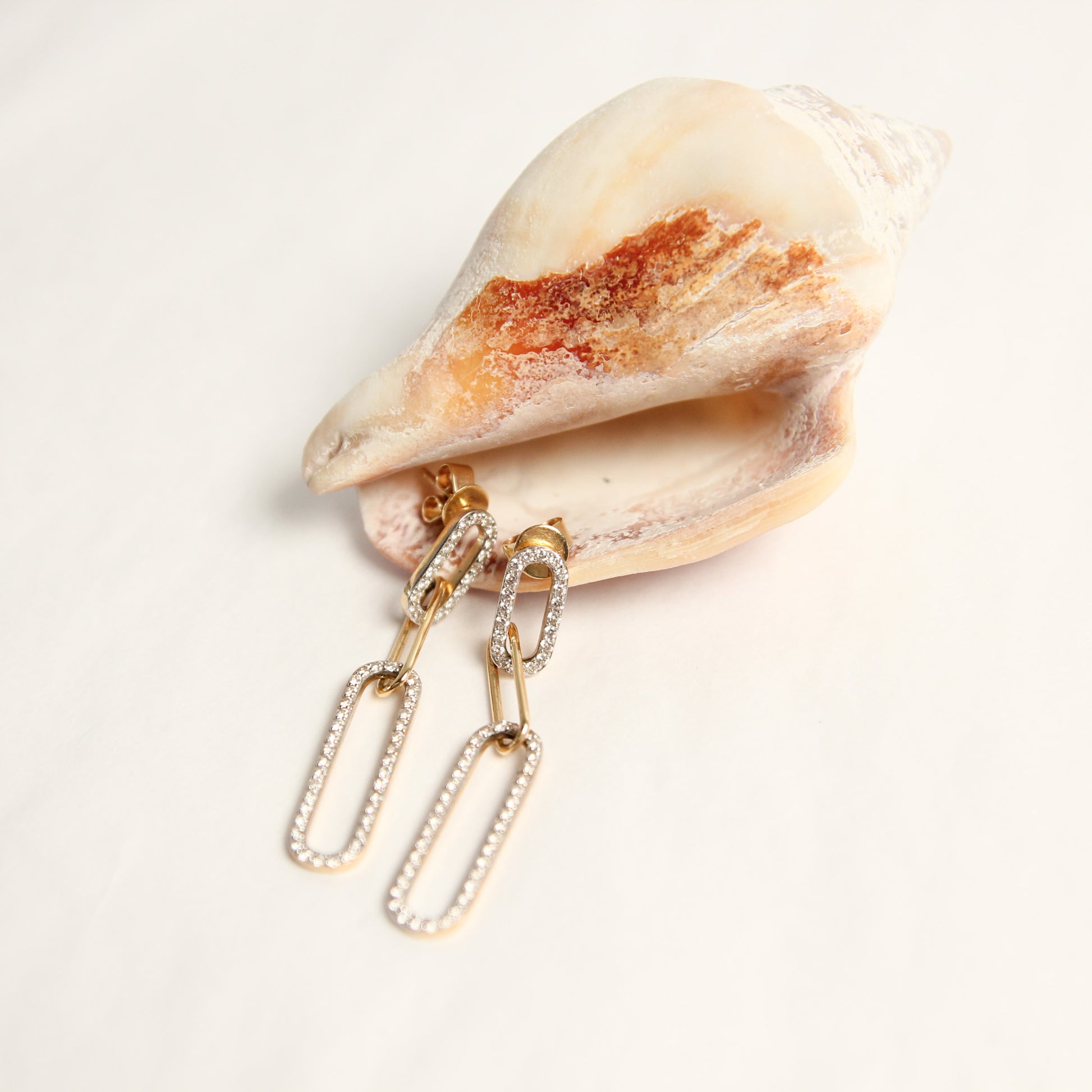 These Christabel 3 Link Diamond Earrings are a timeless classic! Crafted with stunning gold links and adorned with beautiful pave diamonds, they add an exquisite touch of sparkle to any look. Perfect for special occasions or everyday wear, these earrings will take you from day to night in effortless style!