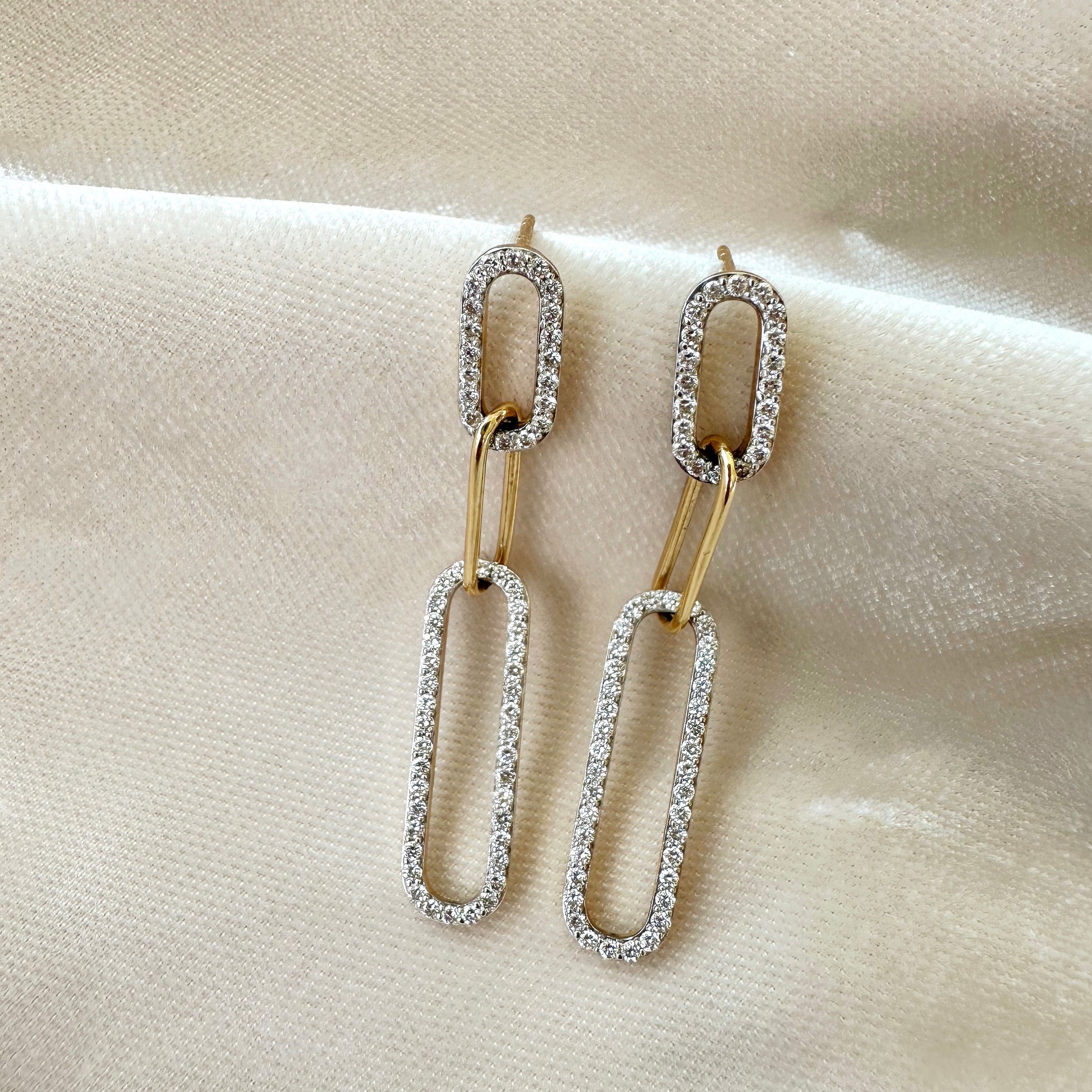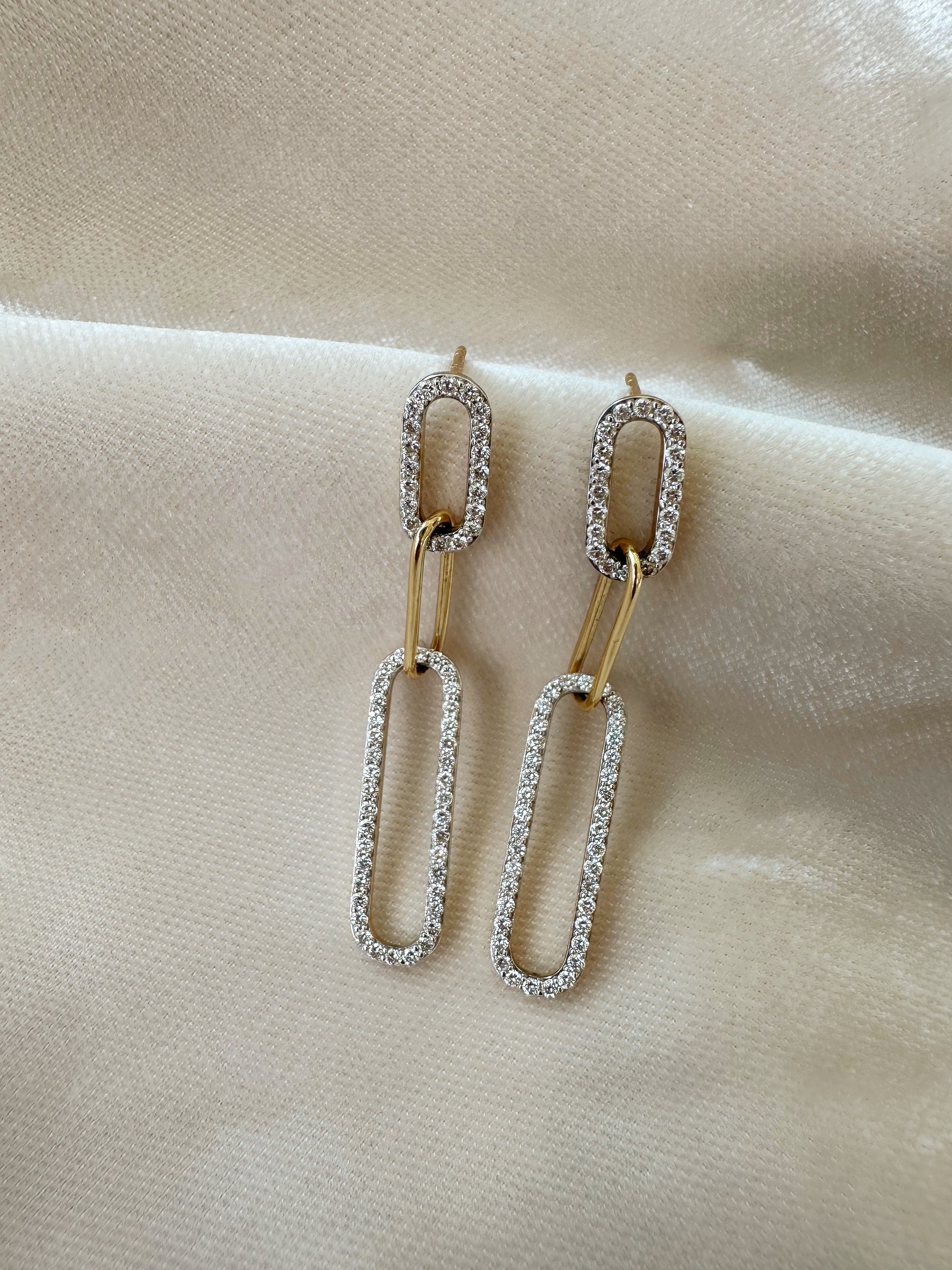 3 LINK DIAMOND GOLD EARRINGS - 1.12TCW