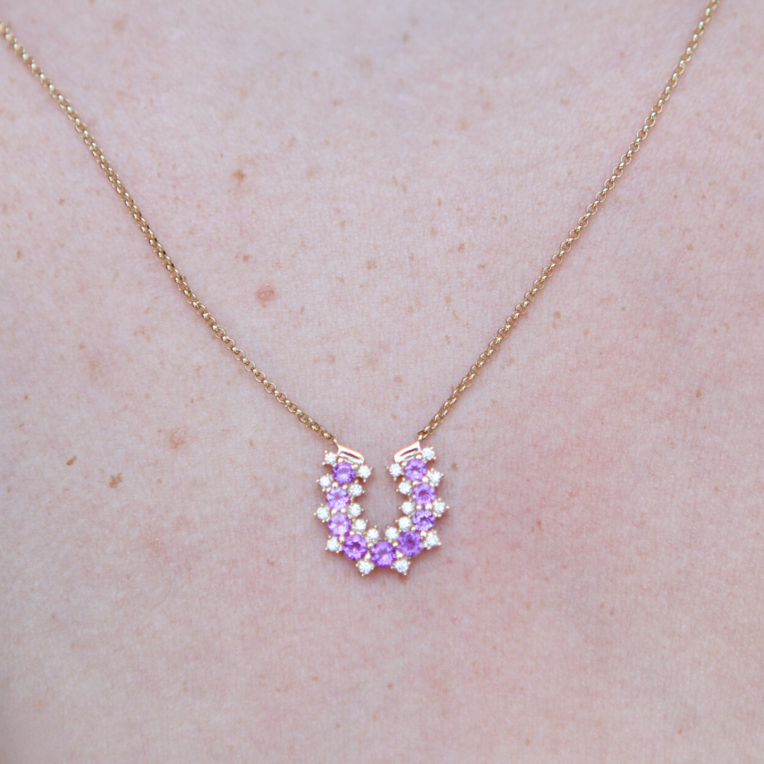 14K YG AMETHYST & DIAMOND HORSESHOE NECKLACE