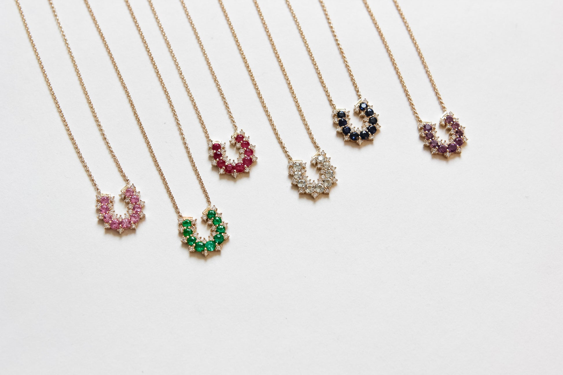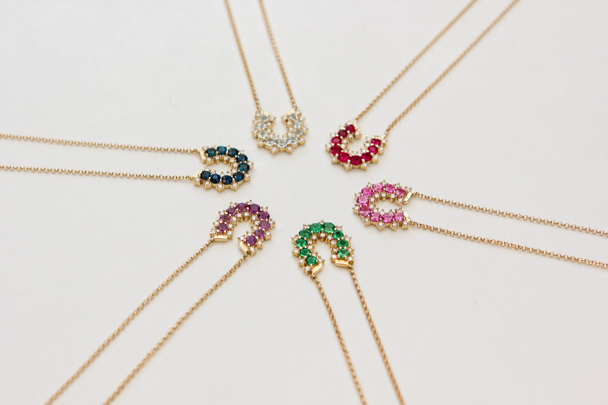14K YG RUBY AND DIAMOND HORSESHOE NECKLACE