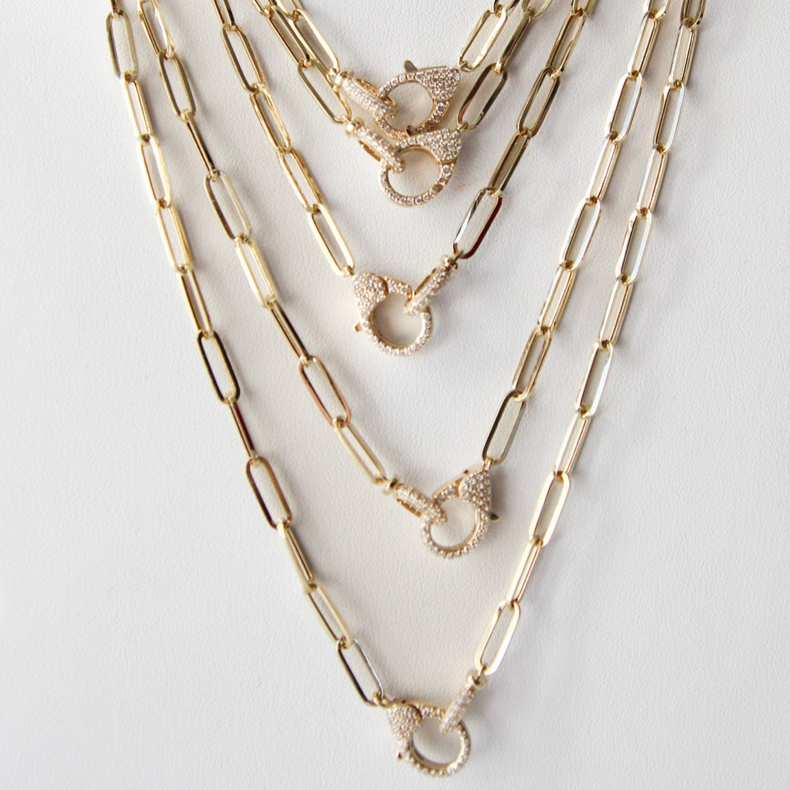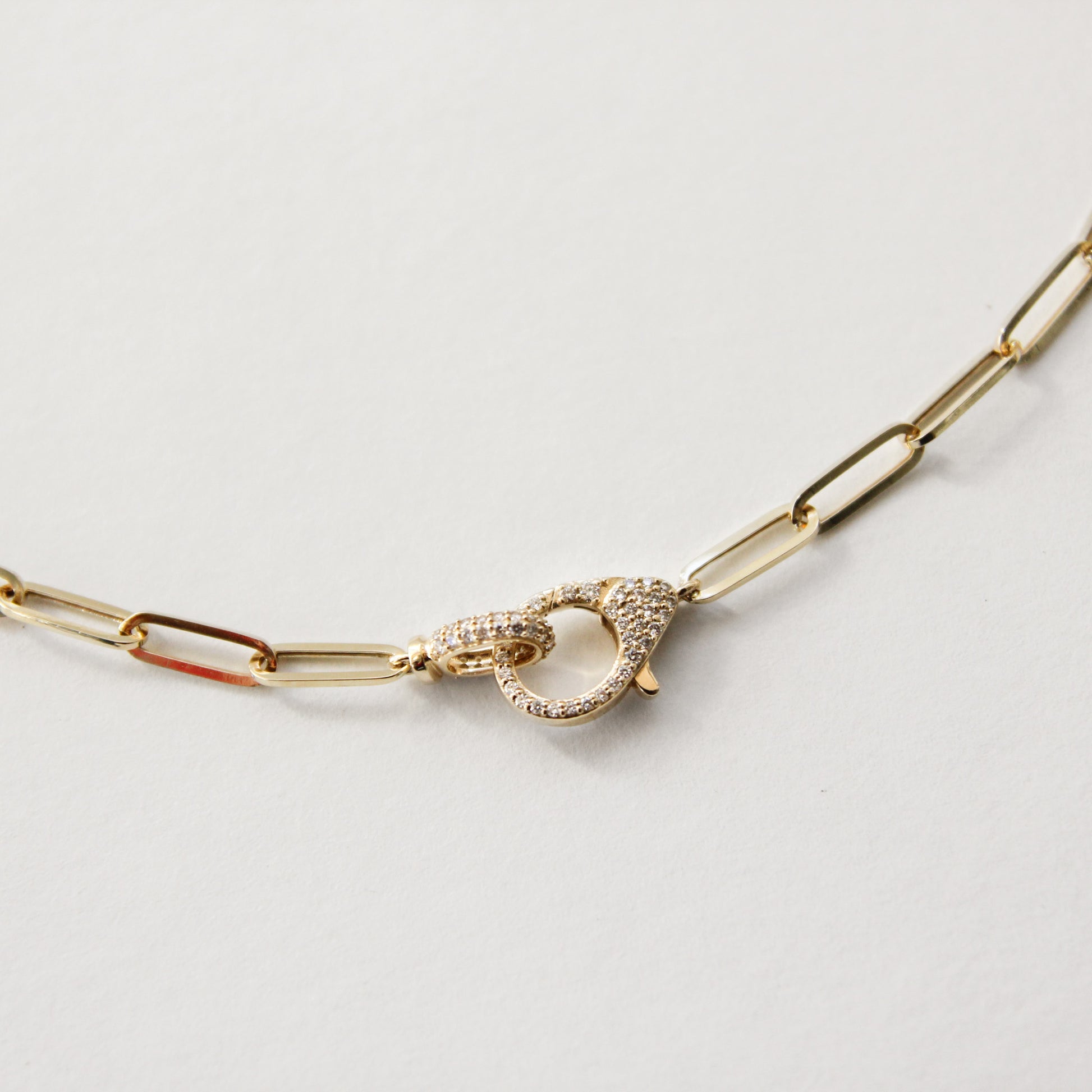 Introducing The Merit Signature Chain - inspired by the captivating charm of Alys Beach. We designed this exclusively for our luxurious Worth Within Collection, this gold paperclip chain features a stunning diamond lobster claw clasp. Available in various lengths for the perfect fit. Elevate your style with this sophisticated and elegant piece.