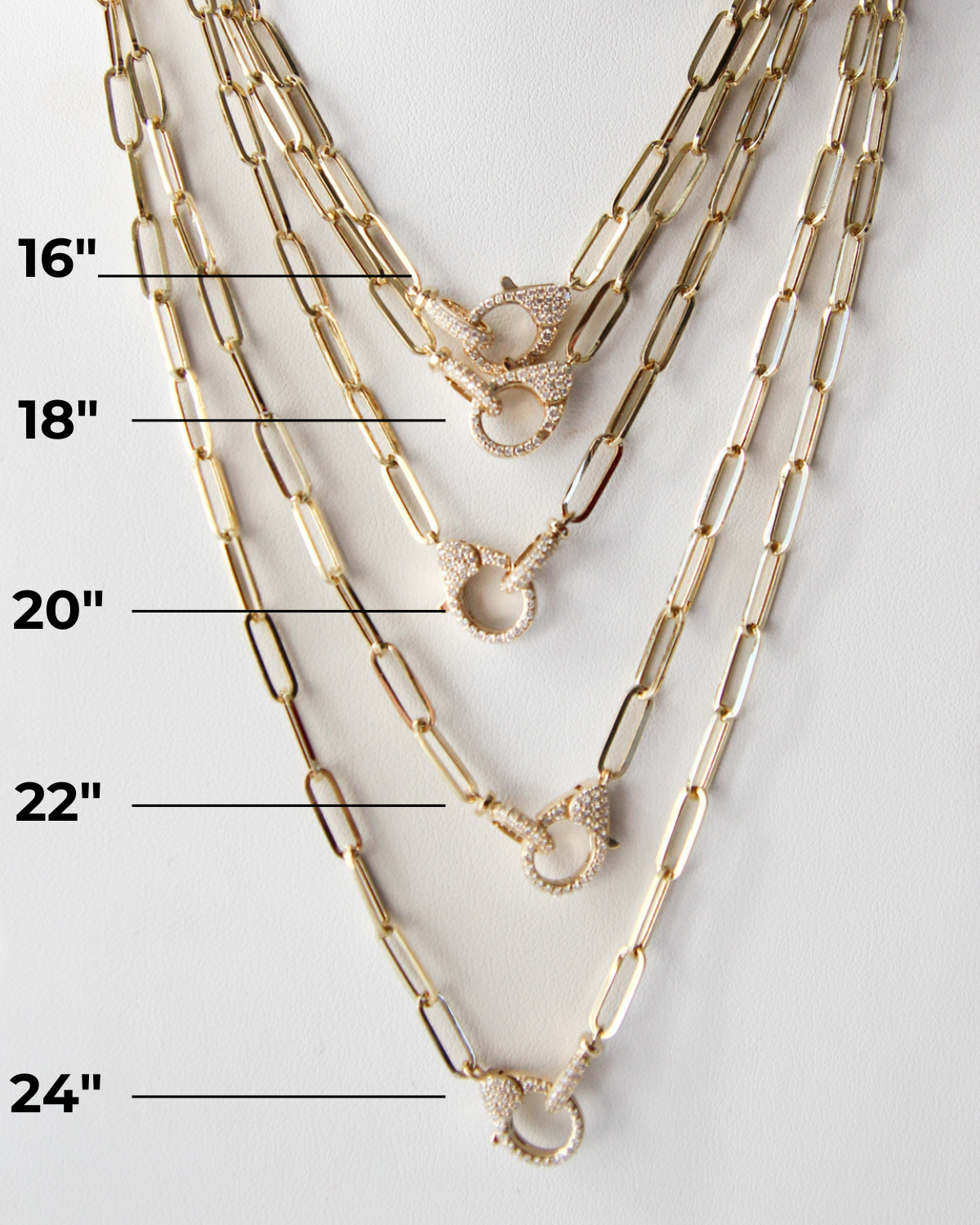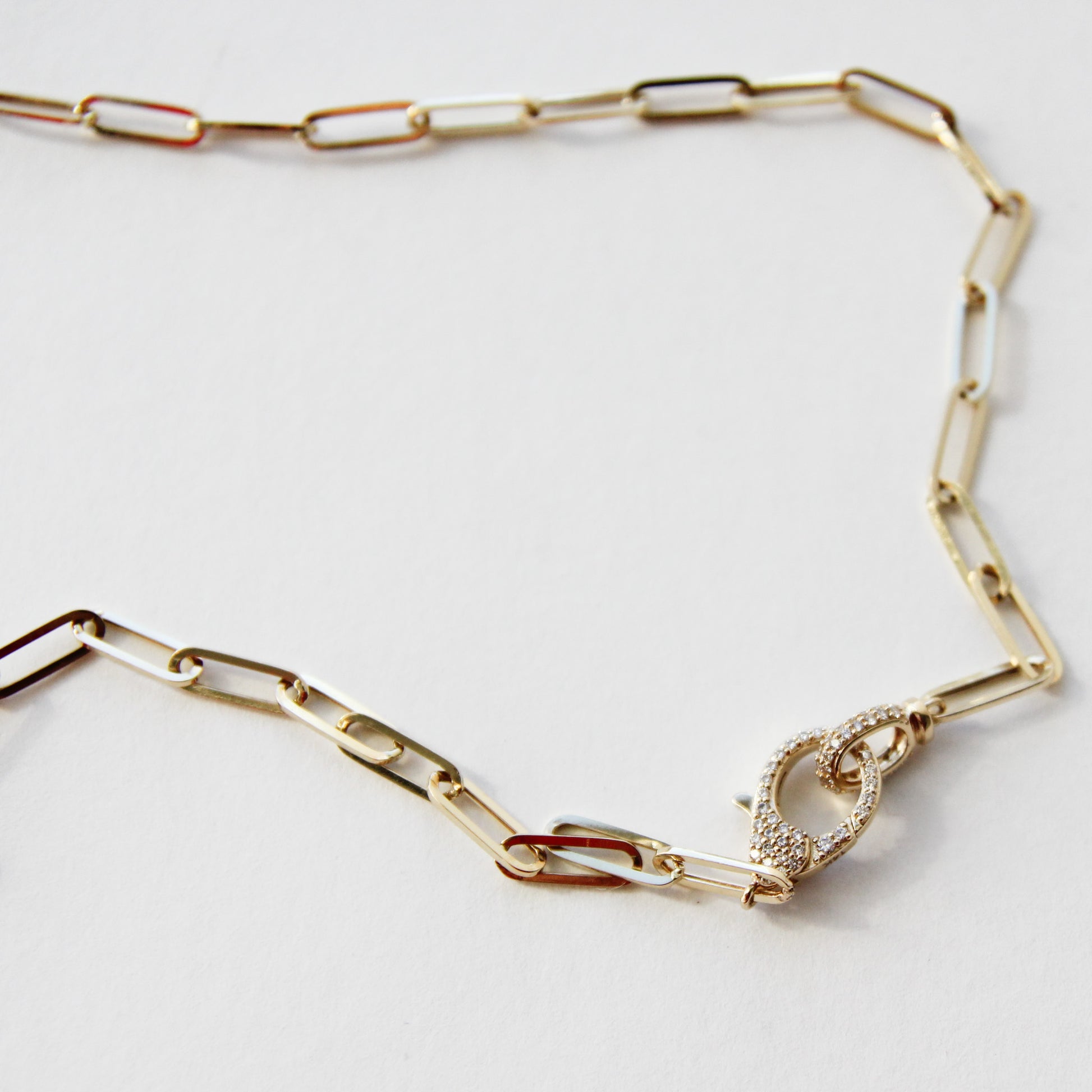 Introducing The Merit Signature Chain - inspired by the captivating charm of Alys Beach. We designed this exclusively for our luxurious Worth Within Collection, this gold paperclip chain features a stunning diamond lobster claw clasp. Available in various lengths for the perfect fit. Elevate your style with this sophisticated and elegant piece.