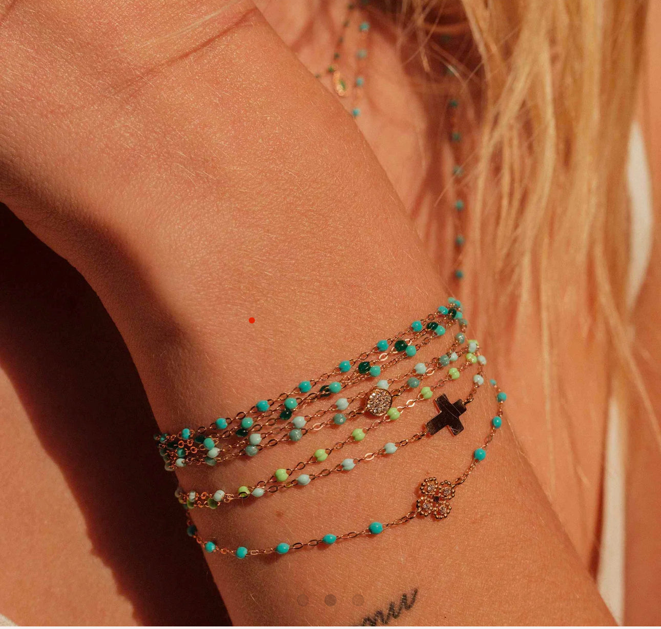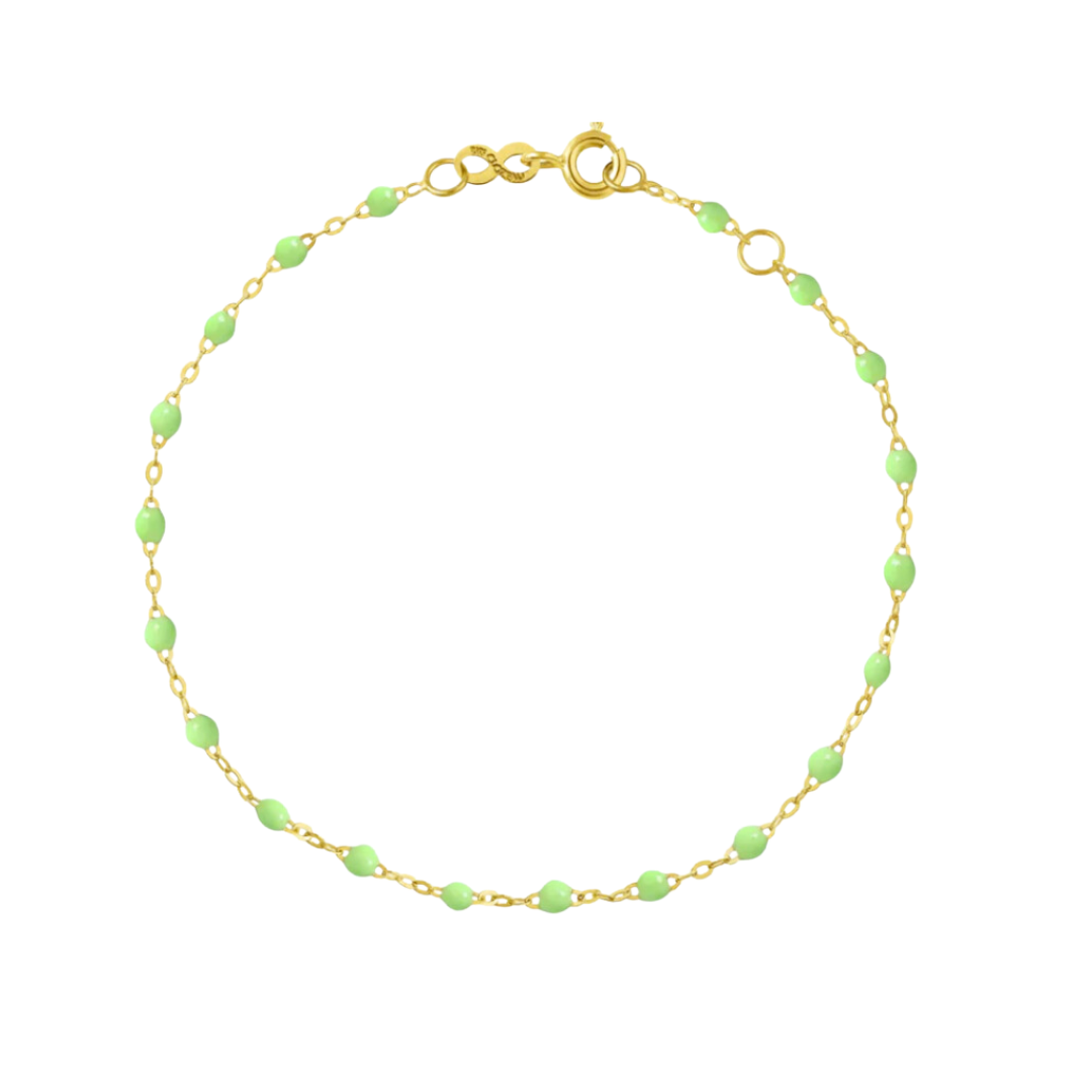 The Classic candy colored bracelet features 18 carat Yellow Gold, and unique resin jewels for a simple, everyday look to elevate your stack and add a pop of color. Find your signature color with MERIT.