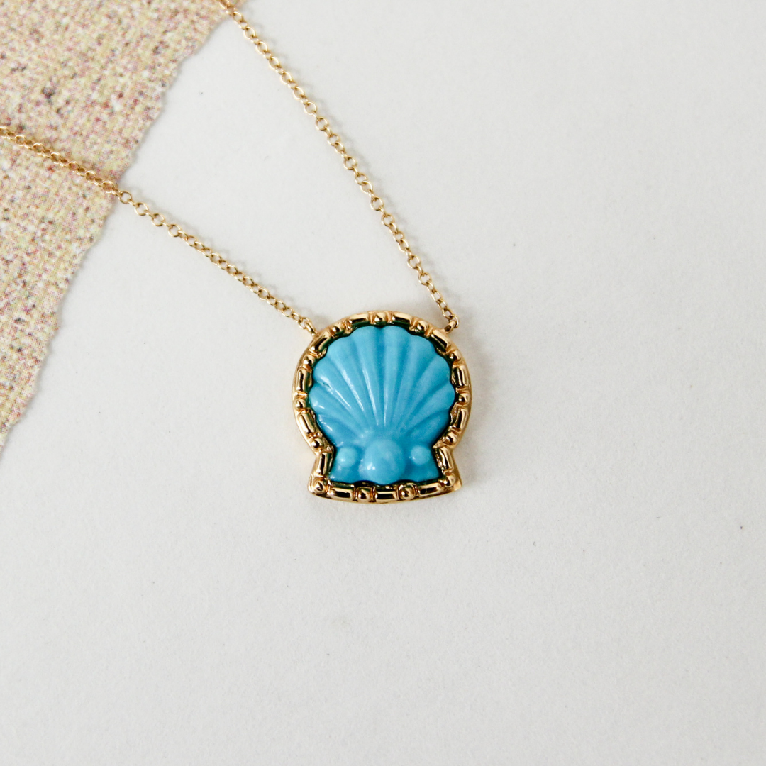 Add a touch of natural beauty to your look with the Alys Shell necklace in Pink Opal. Featuring a delicate gold chain and a stunning shell pendant made of pink opal, this necklace will elevate any outfit and inspire feelings of wonder and awe.