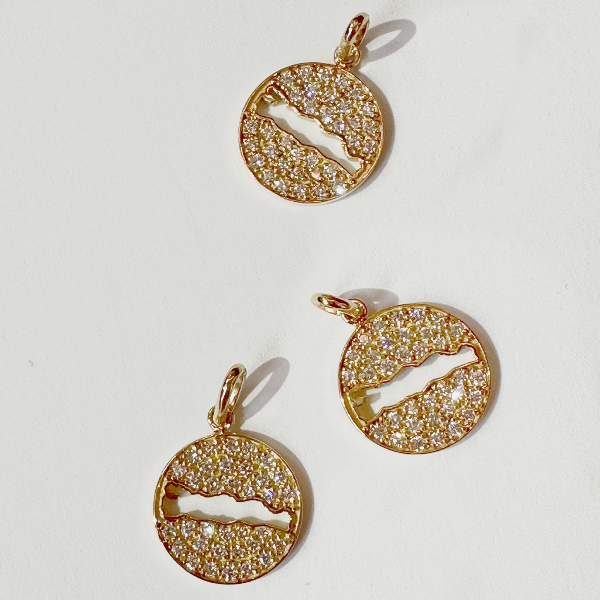 The Le Rive 30A Pave Diamond Large Coin Pendant is our exclusive design featuring the coastline of this stunning slice of the Emerald Coast. This piece is encrusted with pave diamonds making it the true treasure of 30A.