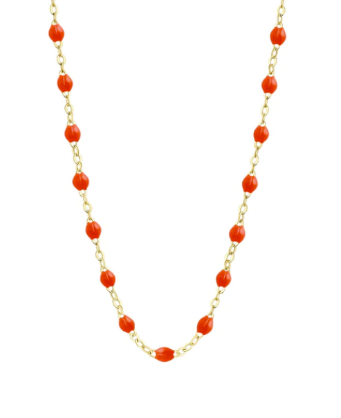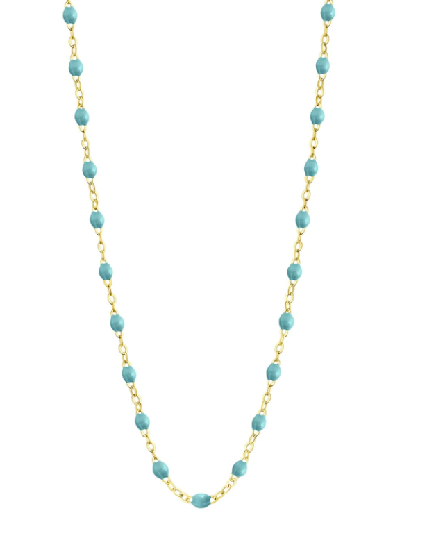 The Classic 16” necklace by gigi CLOZEAU features 18 carat yellow gold, and striking colored jewels for an everday effortless appearance. Layer with your favorite chains, a pile of your favorite colors or let one stand alone for a gorgeous color play. It’s a MERIT must have!