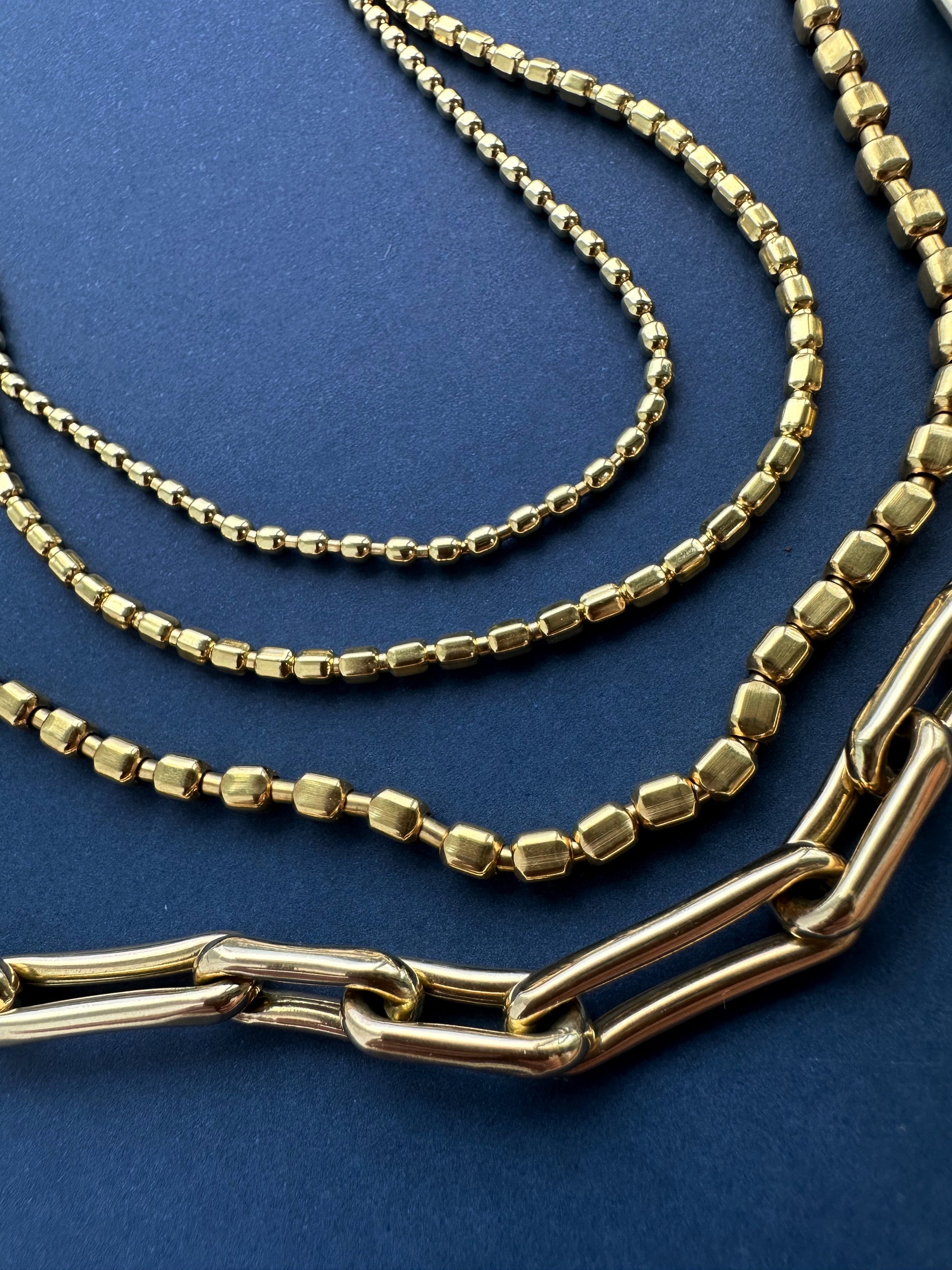 Our Deluxe Layer Nugget Chain is exquisitely crafted with unique intricate facets to make it the perfect piece to build your jewelry story. With 16" of premium gold plated material, this chain is ideal for stacking, layering and accessorizing with your favorite charms.