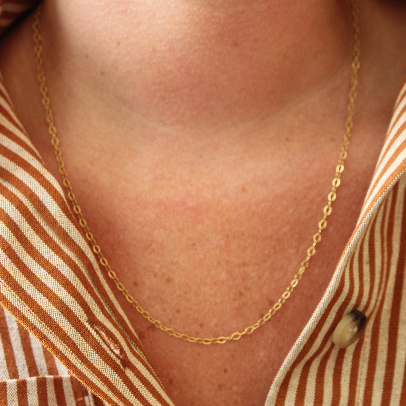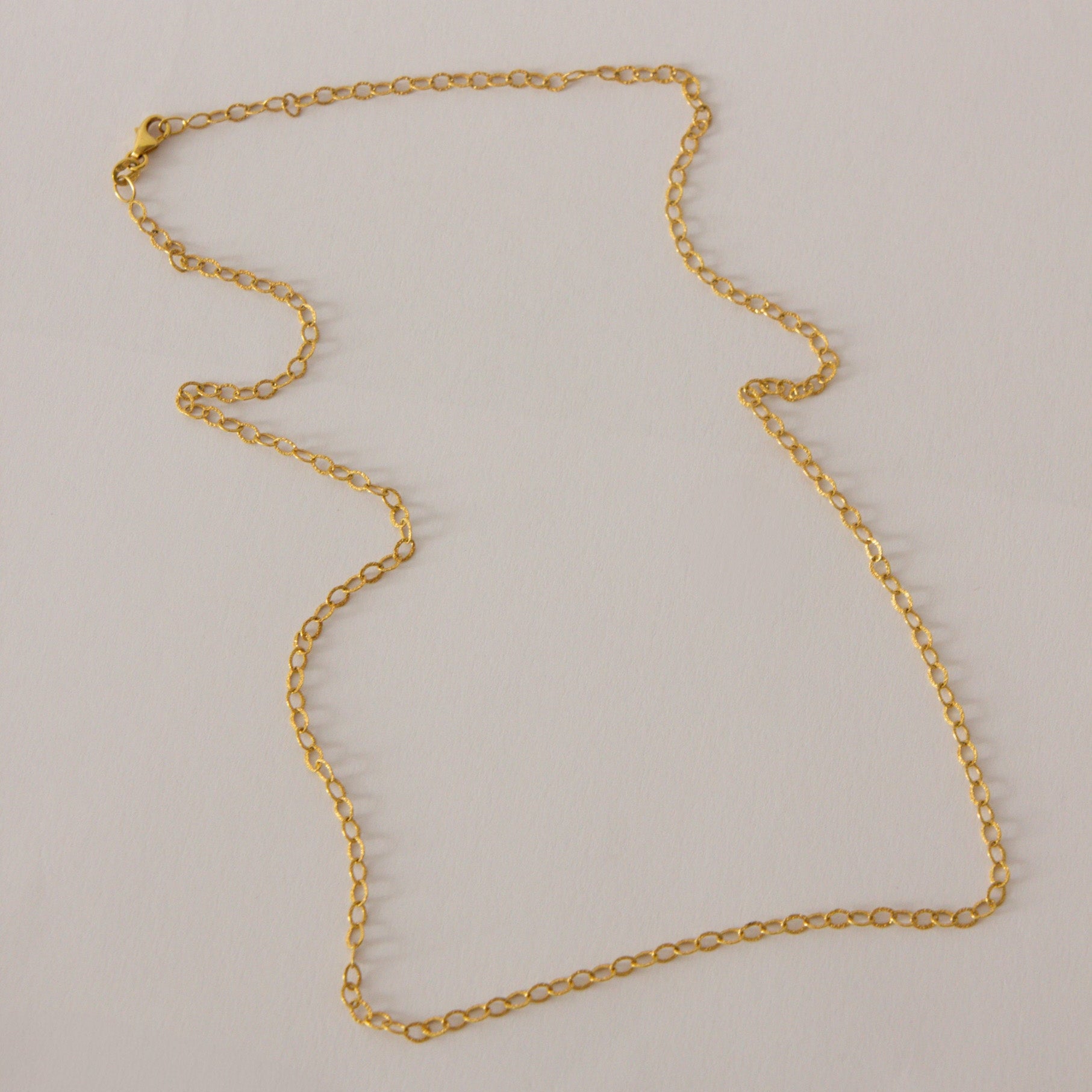 The Rodin Chain - 16" features delicate oval links that drape gracefully for a refined, minimalist look. Lightweight and versatile, this timeless piece is designed to complement any outfit effortlessly, making it an everyday essential you'll cherish. Its subtle elegance ensures it remains a chic and enduring staple in your jewelry collection.